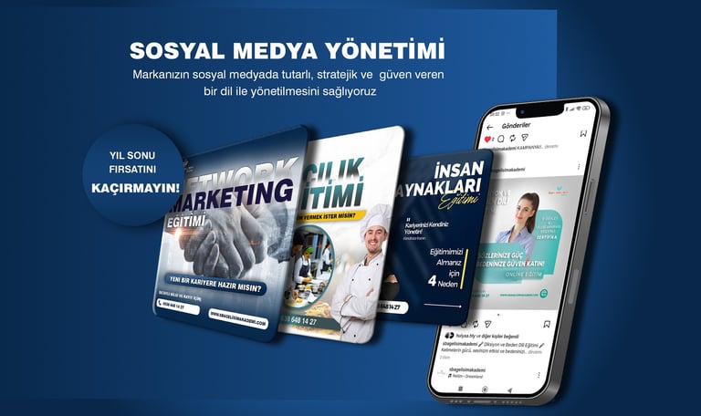 Sosyal medya hesaplarınızı özgün tasarımlar ve stratejik içeriklerle profesyonel şekilde yönetiyoruz.
